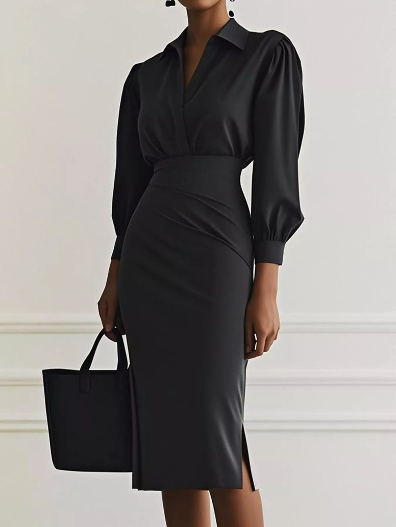 Ruched Midi Shirt Dress with Side Slit