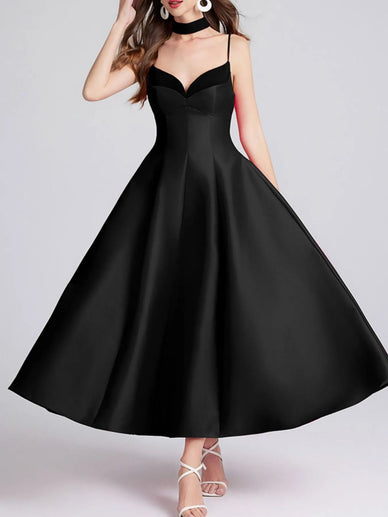 Sweetheart Spaghetti Strap Midi Dress with Collar